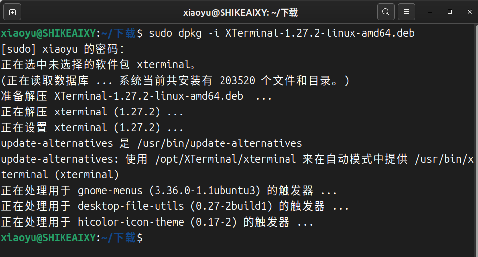 下载完成后打开与 XTerminal-X.X.X-linux-amd64.deb 同级目录的终端