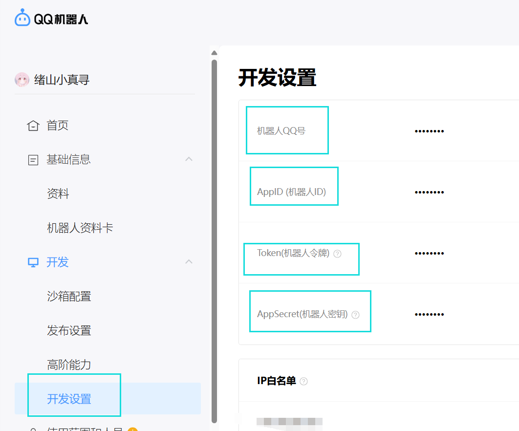 q.qq.com点击开发-开发设置并复制ID 令牌 秘钥填写到config.yml配置文件的7~10行