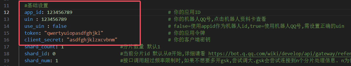 q.qq.com点击开发-开发设置并复制QQ号 ID 令牌 秘钥填写到config.yml配置文件的12~16行