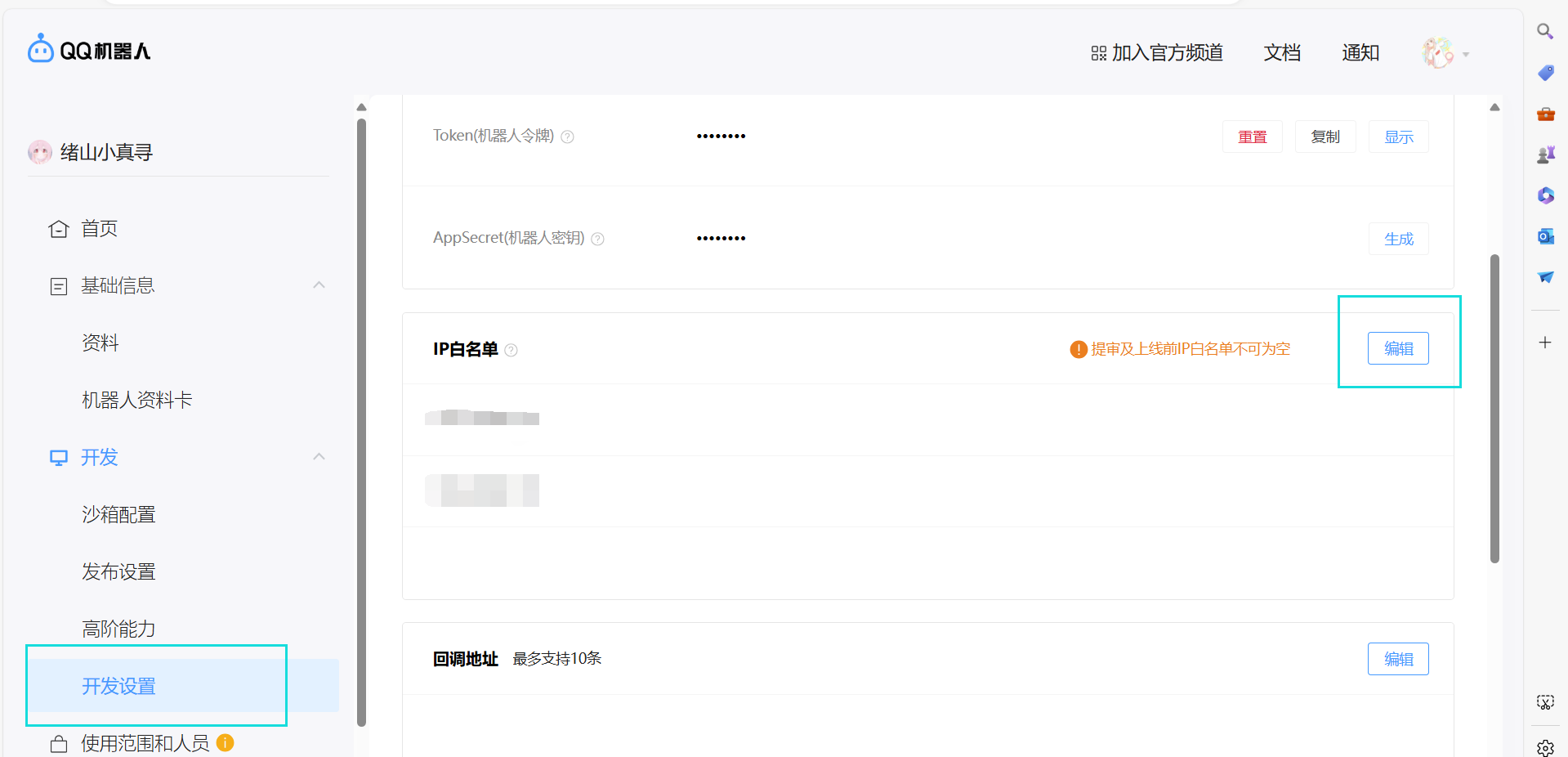 - 填写公网IP至开放平台(不填写无法上线和连接Bot!!!)